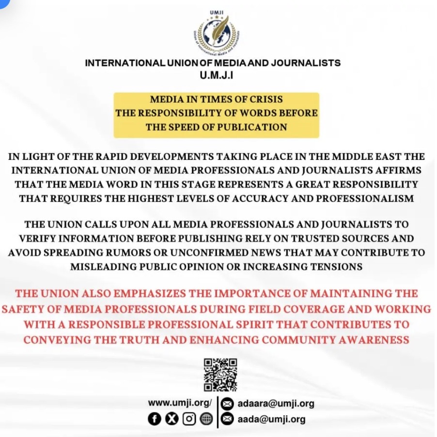 الاتحاد الدولي للصحفيين والإعلاميين يصدر بيانًا بشأن مسؤولية الكلمة في زمن الأزمات