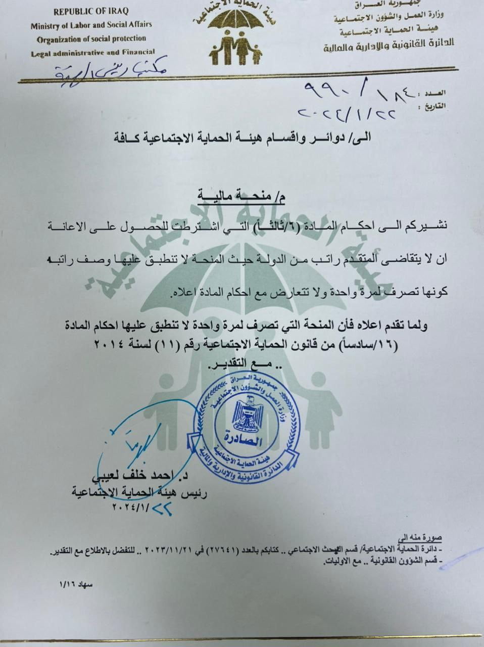 وزير العمل يوجه بعدم قطع الإعانة في حالة حصول المستفيد على منحة مالية لمرة...